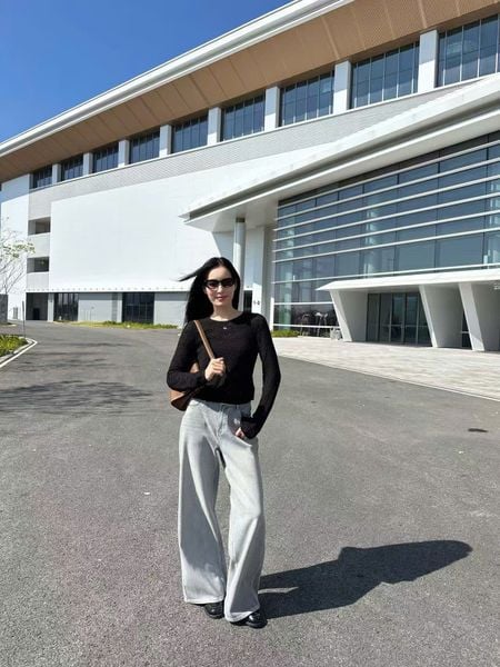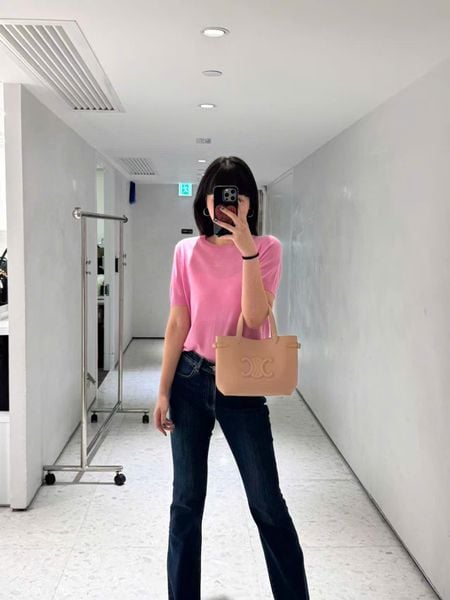 Hoàn thiện bộ trang phục với giày sneaker trắng hoặc giày lười, cùng một chiếc túi nhỏ xinh — đơn giản nhưng sang.