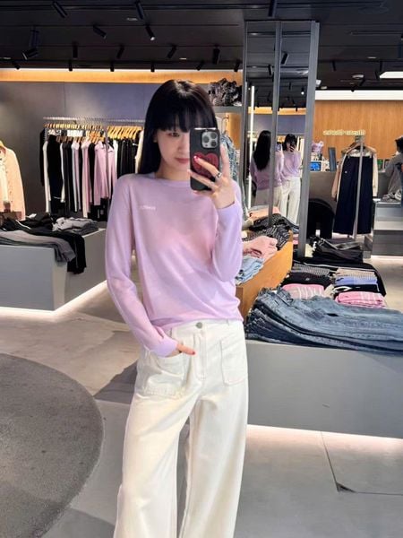 Áo len mỏng là lựa chọn hoàn hảo cho những ngày lạnh vừa phải. Chất liệu mềm nhẹ giúp bạn giữ ấm mà không tạo cảm giác cồng kềnh. Đây cũng là kiểu áo cực kỳ “dễ tính” khi phối với mọi dáng jeans — từ ống loe đến ống đứng.